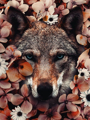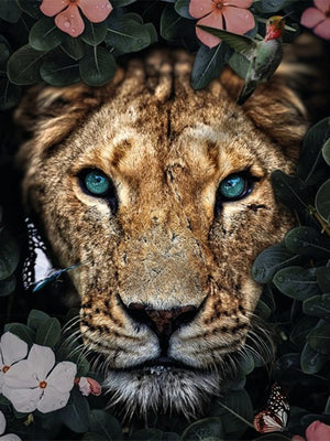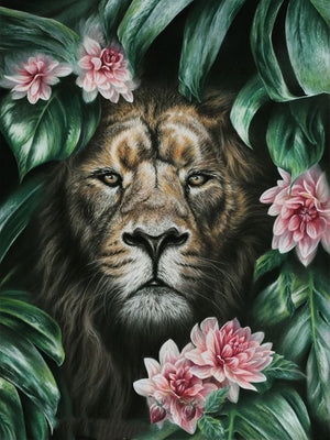 Full Diamond Painting kit - Lion on the flowers