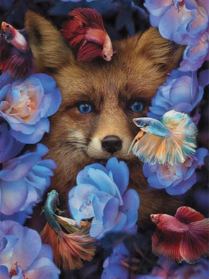 Full Diamond Painting kit - Fox on the flowers