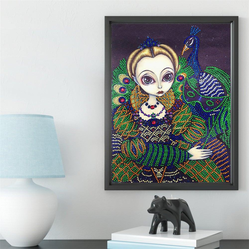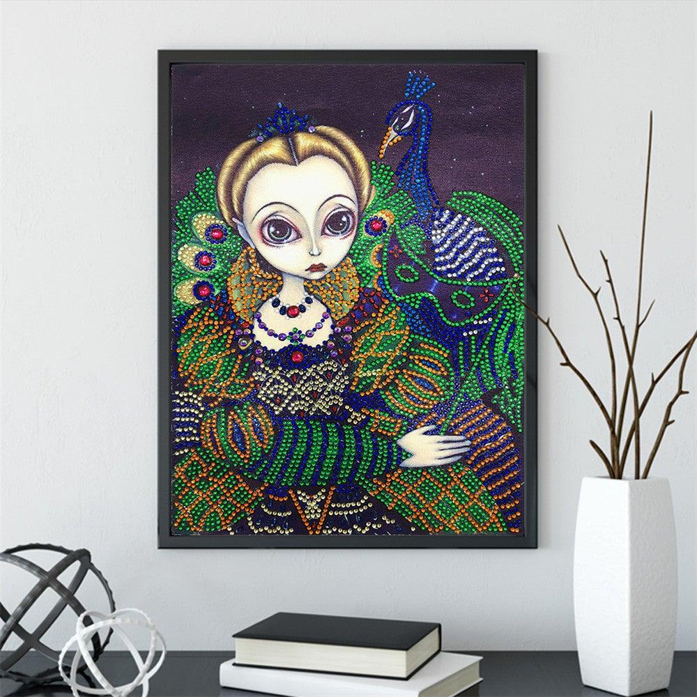 Crystal Rhinestone Diamond Painting Kit - Peacock and Girl