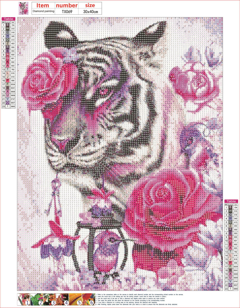 Full Diamond Painting kit - Tiger and roses