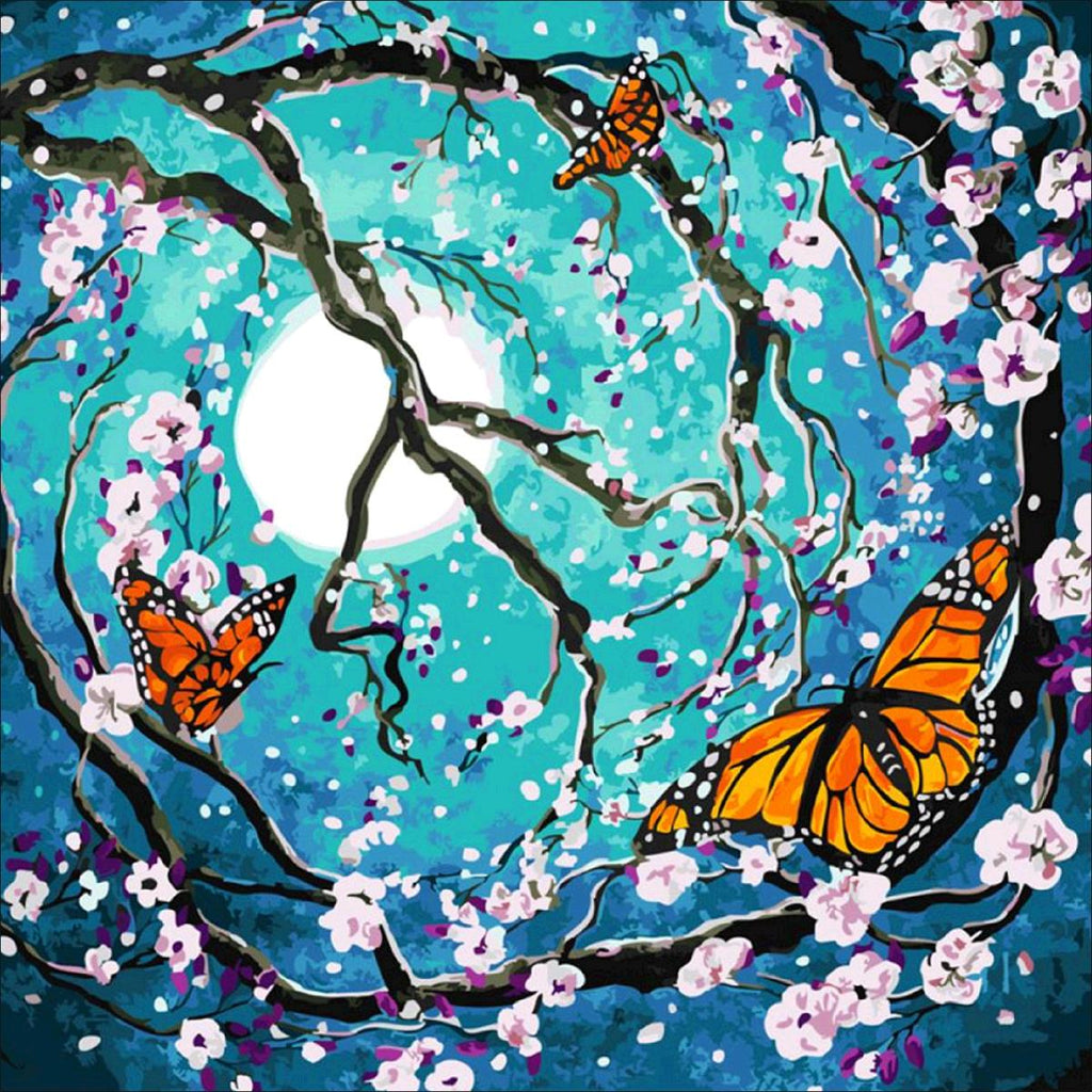 Full Diamond Painting kit - Butterfly and Peach Blossom
