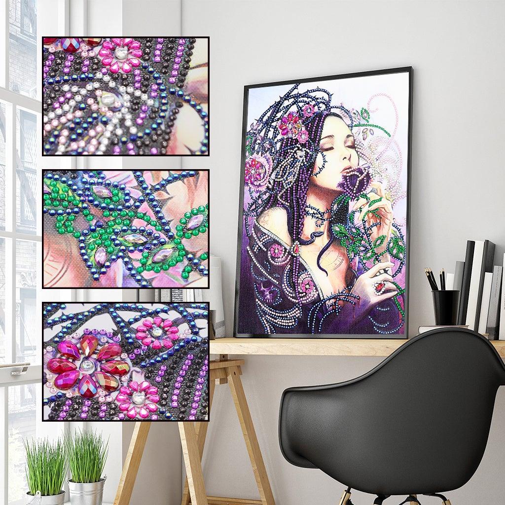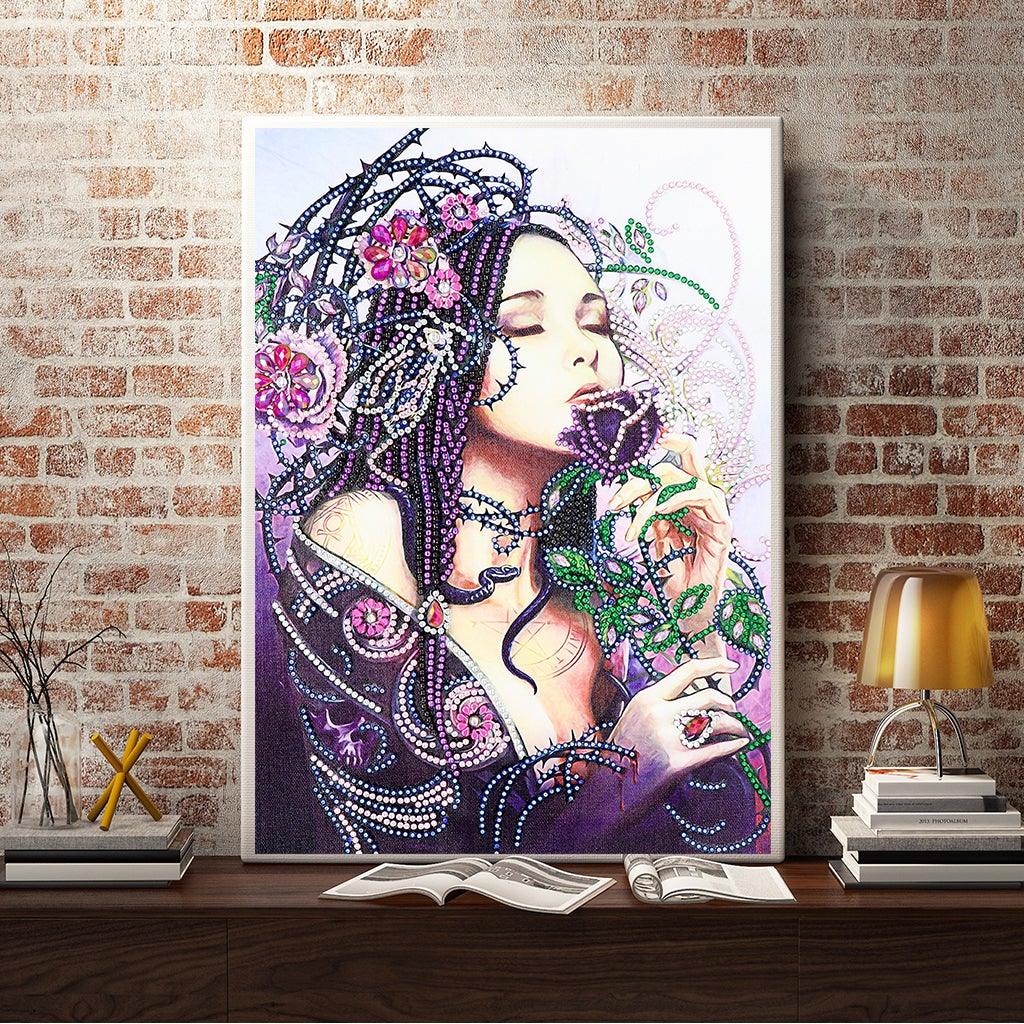 Crystal Rhinestone Diamond Painting Kit - Beauty woman and rose flower