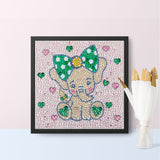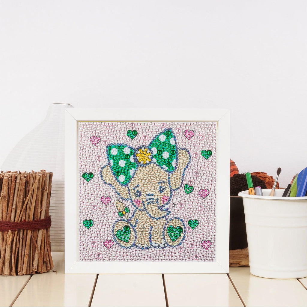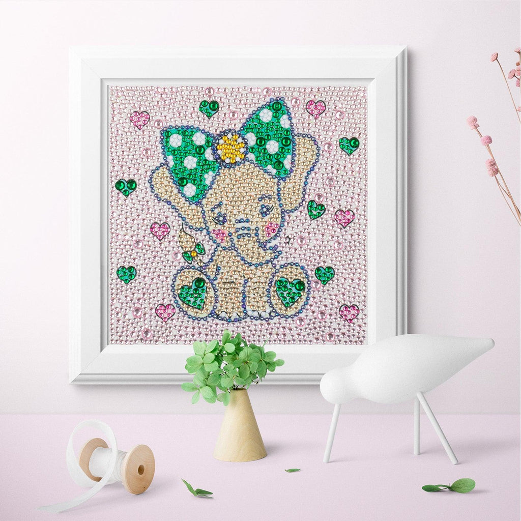 Crystal Rhinestone Full Diamond Painting-Little pink elephant wearing a bow