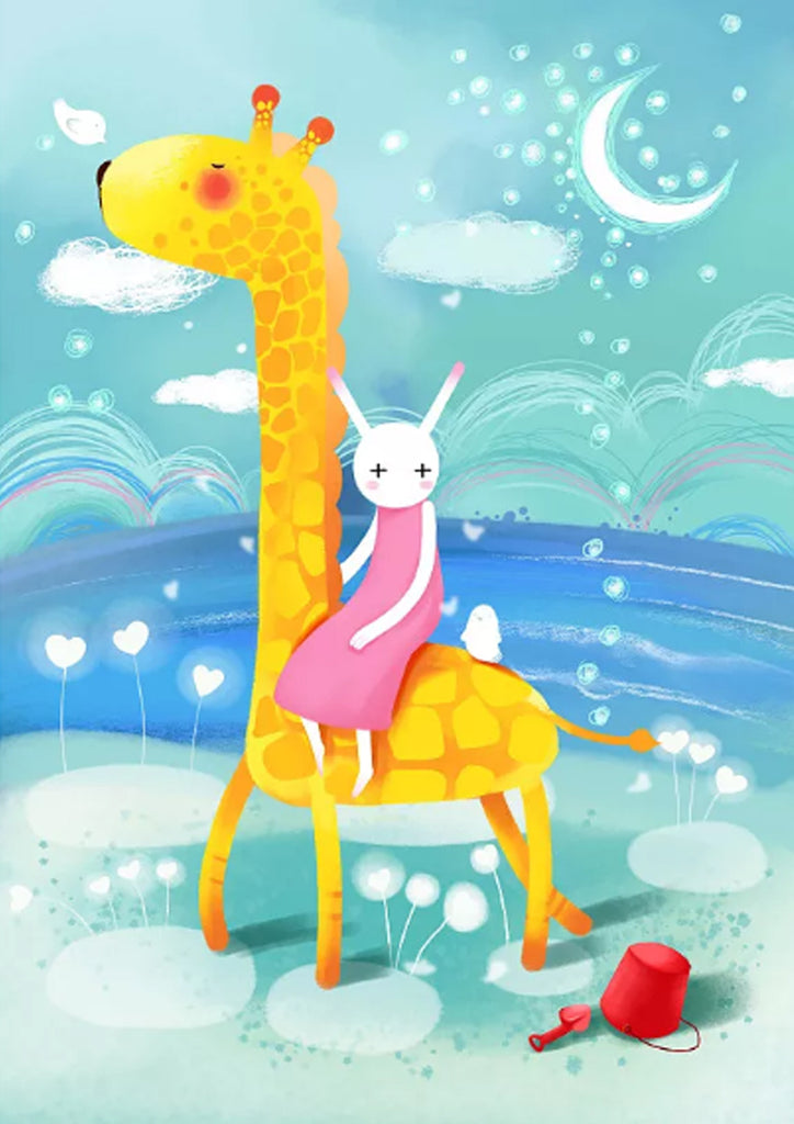 Full Diamond Painting kit - Giraffe and white rabbit