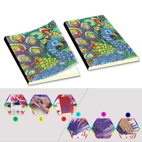 DIY Diamond Painting Notebook - Peacock (No lines)
