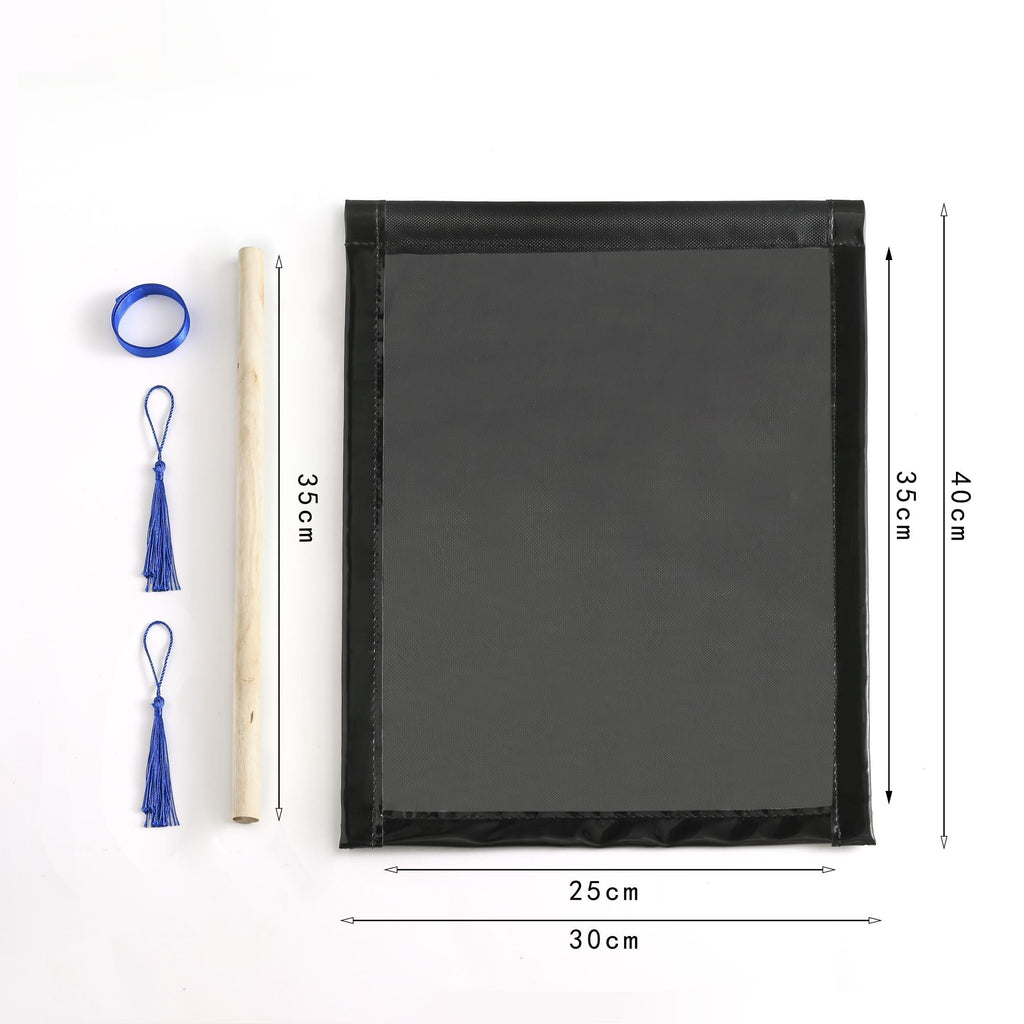 You only need to insert the wooden sticks into the hanger, fix the long ribbon on the two sides of the wooden stick, and fix the hanging ears on the two corners below the hanger.