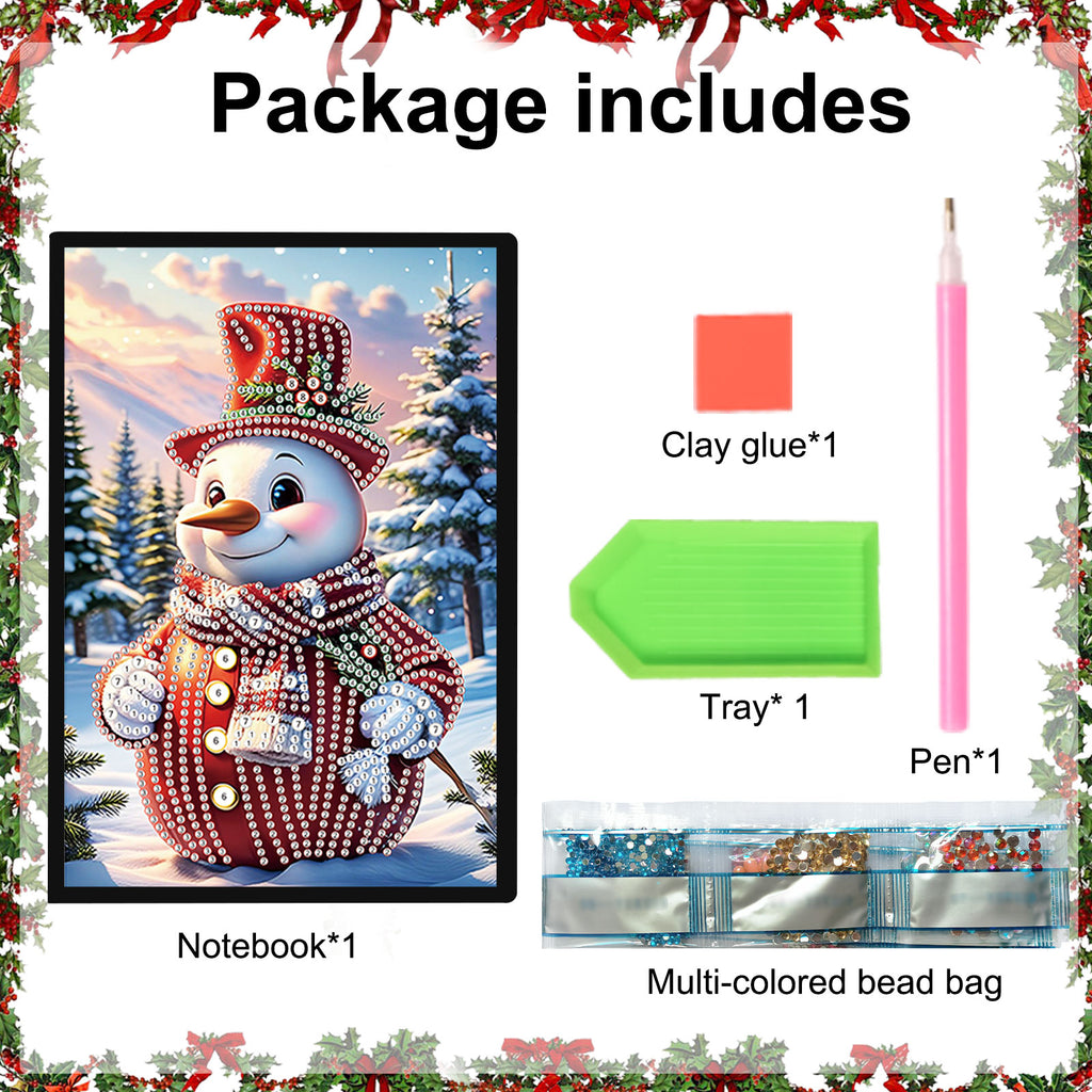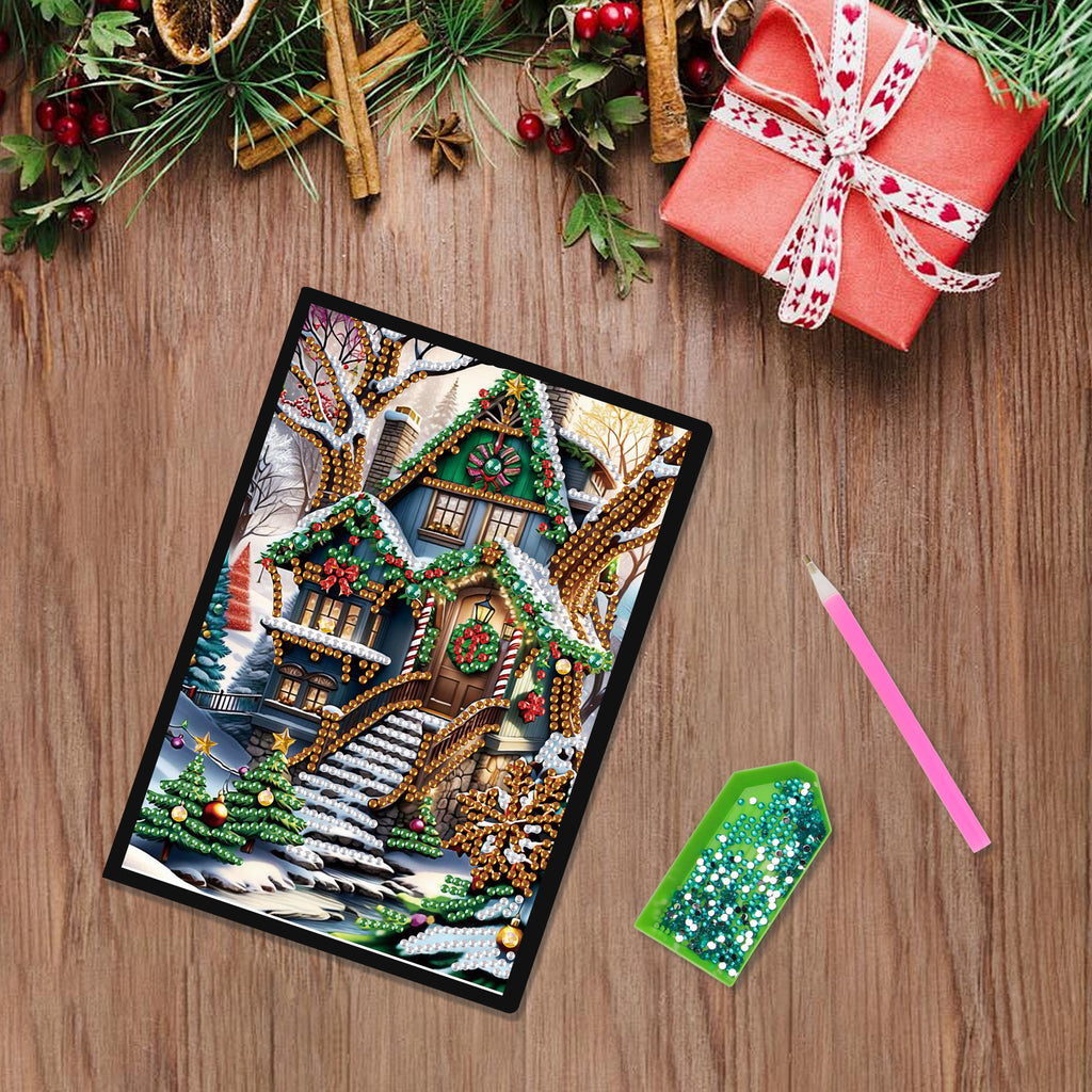 DIY Diamond Painting Christmas Theme Notebook Kit, Diamond Cover Blank Page, 5D Crystal Water Diamond Art, Perfect Gift for Friends and Family