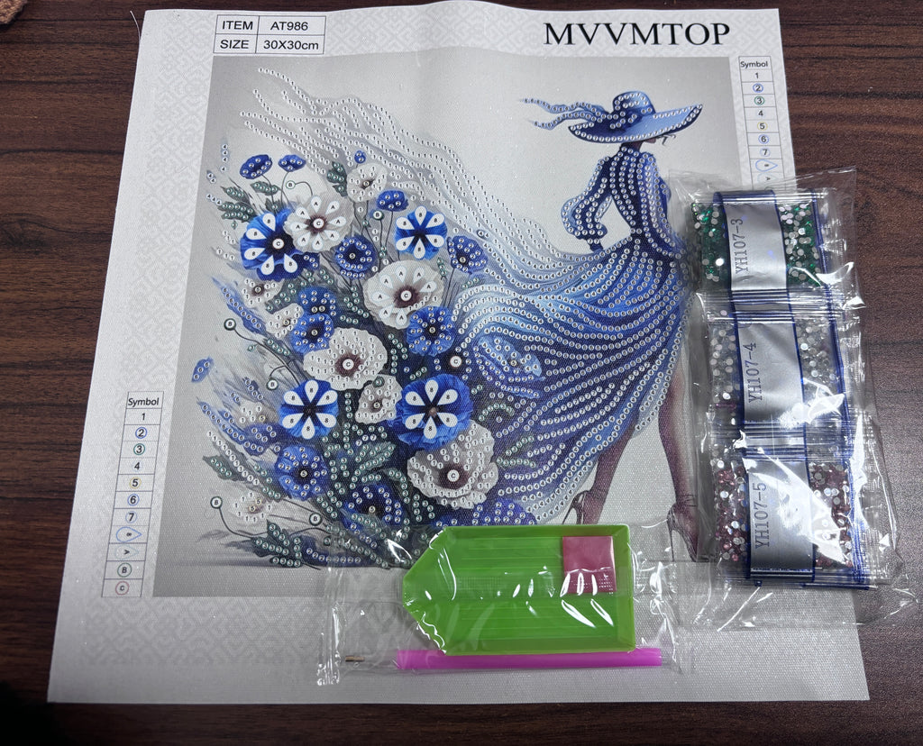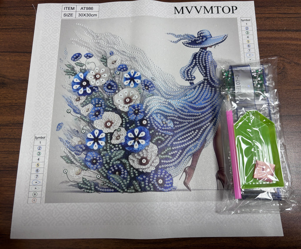 MVVMTOP Diamond Art Painting Kit-Blue Dress Lady