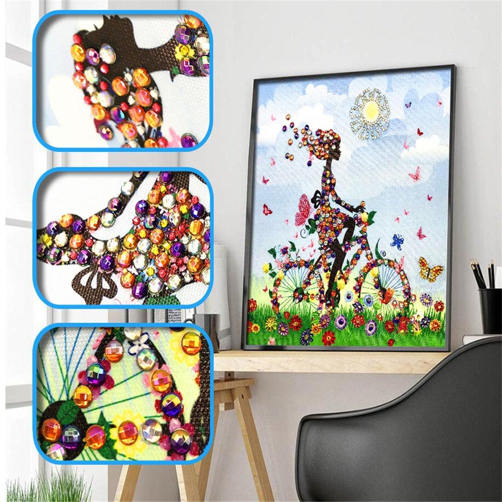 Crystal Rhinestone Diamond Painting Kit- Girl riding a bicycle